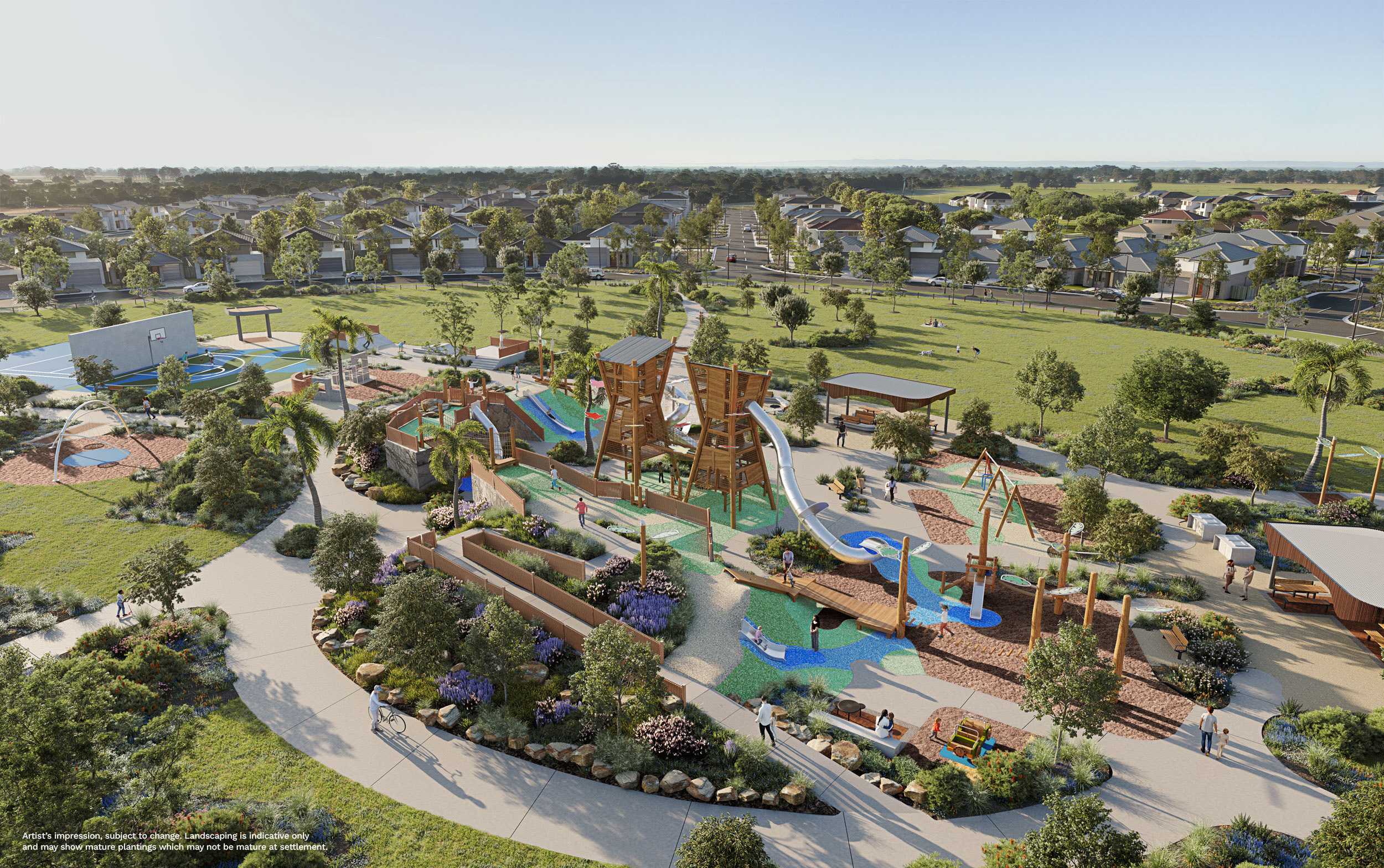 The 120-hectare proposed Clyde Regional Park and proposed Sports Precinct will create a large integrated community area, promoting well-being. It features green spaces, walking tracks and parks for picnics and fitness activities.